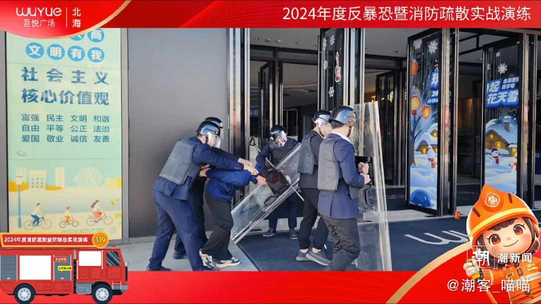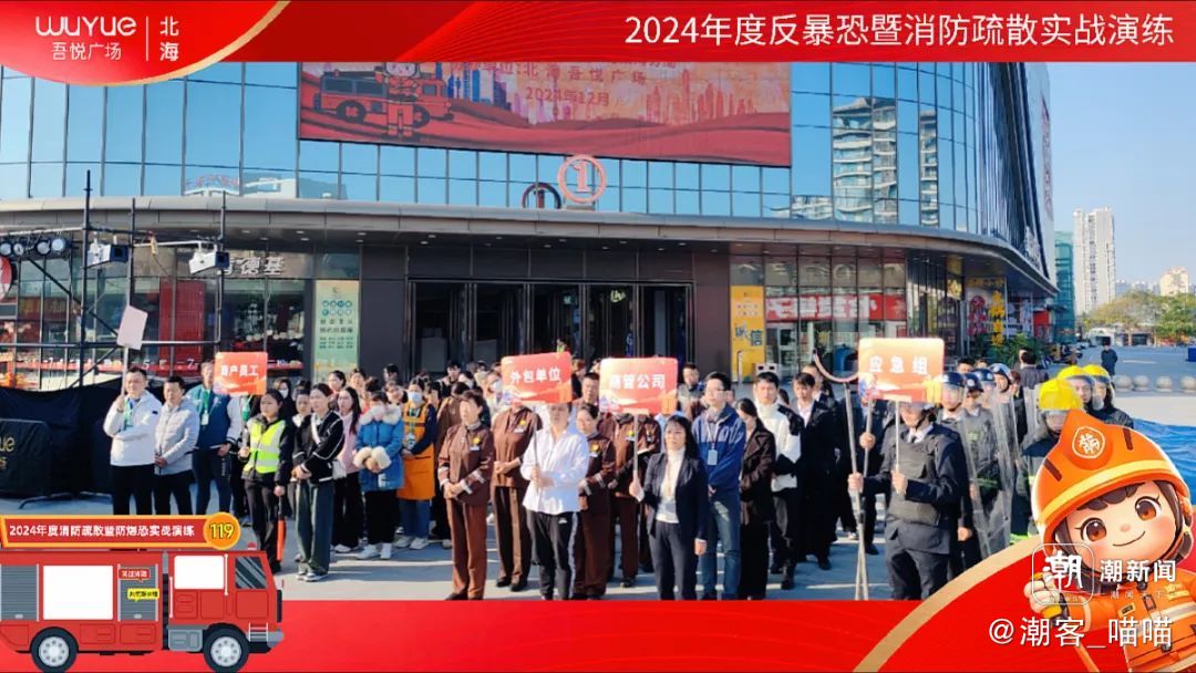 12月20日,北海吾悦广场联合北海市消防救援支队、北海市公安局银海分局开展反暴恐暨消防疏散实战演练,提高员工对火灾扑救、暴恐袭击等突发事件的处置能力。