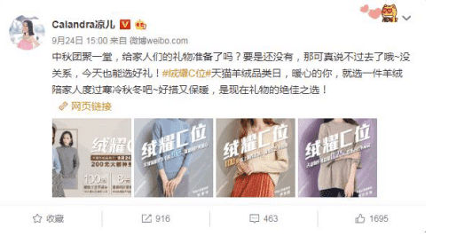 本次服饰品类日羊绒专场活动线上线下同时展开,双线联合发力, 进行了一场整合营销。不仅为消费者推荐优选羊绒产品,提升消费者对审美品位及精致生活的追求,更是将天猫羊绒品类日作为天猫品类升级的又一个关键点,向消费者传达了天猫为其打造品质生活的决心。